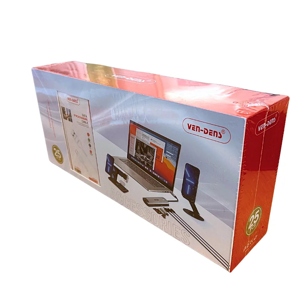 The Vendens Data Sync & Charging Cable is designed for efficient connectivity and charging capabilities. This cable supports fast data transfer, allowing you to quickly sync files between your devices, such as music, photos, and documents. It is also capable of charging your devices at a speedy rate, ensuring you spend less time tethered to an outlet. Constructed with durability in mind, it features a robust exterior that resists fraying and wear from daily use. The Vendens cable is compatible with a wide range of devices, making it a versatile accessory for your tech needs.